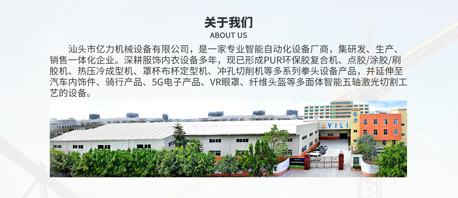 汕頭市億力機(jī)械設(shè)備有限公司網(wǎng)站正式上線(xiàn)! 汕頭市億力機(jī)械設(shè)備有限公司是一家集研發(fā)、生產(chǎn)銷(xiāo)售于一體的專(zhuān)業(yè)性面料貼合機(jī)械、胸圍模杯機(jī)械、無(wú)縫工藝鞋面機(jī)械、口罩生產(chǎn)線(xiàn)和焊耳帶機(jī)械企業(yè)。